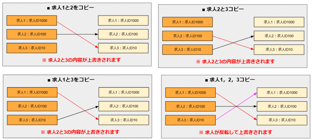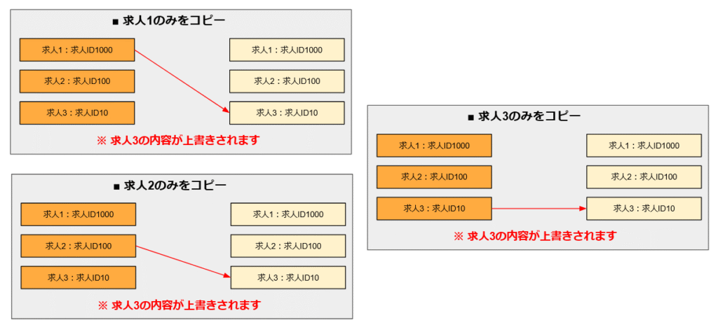 ※1)1求人のみをコピー元として選択した場合、必ず求人3の内容が上書きされます