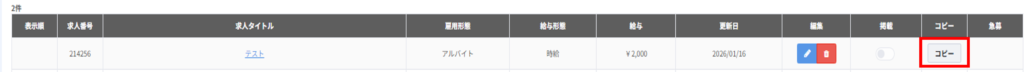 3. コピー基求人の「コピー」ボタンをクリックします。