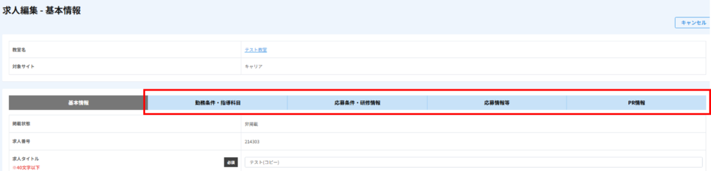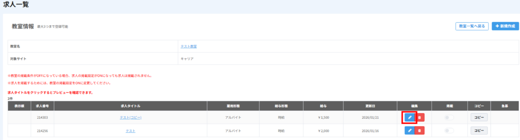 コピーを行う際には、コピー基となる教室・求人の情報を先に編集しておきましょう。